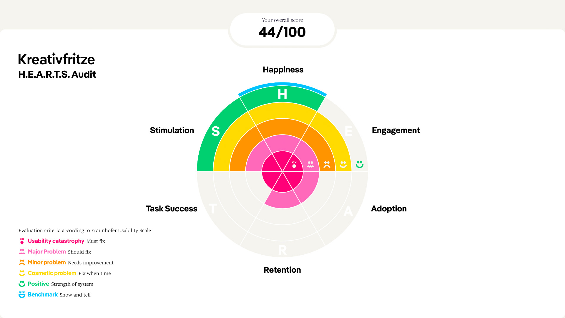 Evaluating usability and other factors, also benchmarked against best practices. Methodology inspired by Google. Adapted by Robert Fritze, Kreativfritze. Blending the best of: